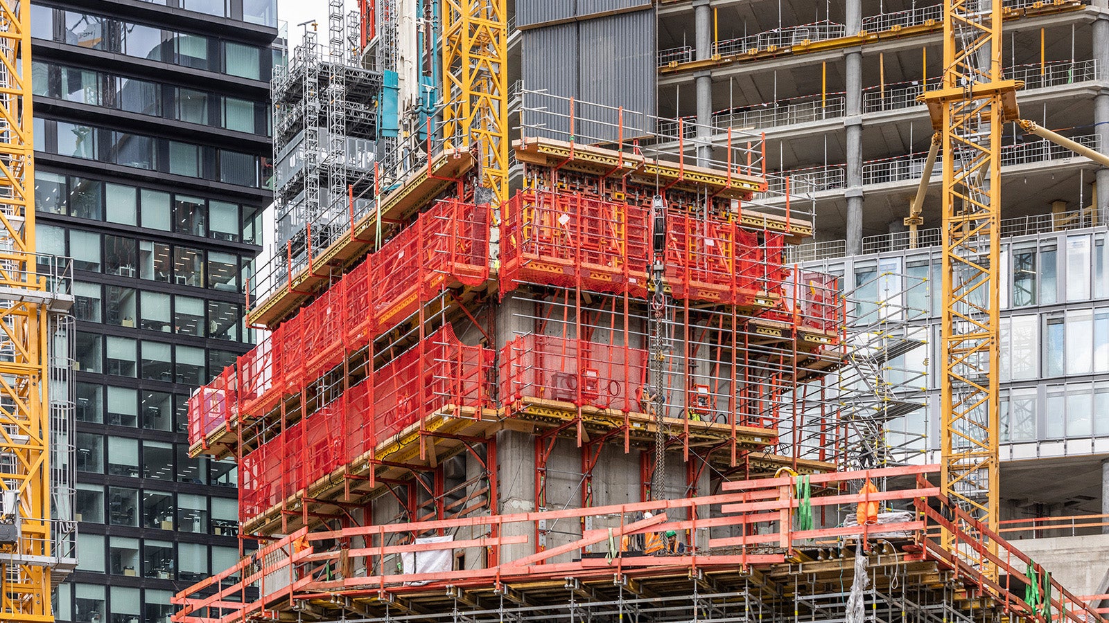 Da Hochhäuser immer mehr in die Höhe wachsen und die Anforderungen an Logistik und Sicherheit steigen, ist eine enge Zusammenarbeit und Vertrauen auf der Baustelle extrem wichtig. Wie die Zusammenarbeit läuft, erfährt Elisabeth während des Rundgangs, als sie auf die Kollegen von der Baufirma trifft, darunter Mohamed Badran, Bauleiter bei GP Con. Er sagt über PERI: „Wir pflegen eine langjährige, gute Zusammenarbeit auf einer freundschaftlichen Basis, die bis jetzt ohne Probleme funktioniert hat.“ Oberbauleiter Roger Schmitt ergänzt kurz und bündig: „Die Zusammenarbeit ist partnerschaftlich, innovativ, klasse.“ Das kann Elisabeth nur zurückgeben. „Es ist eine Zusammenarbeit auf Augenhöhe. Wenn etwas mal nicht klappt, kommunizieren wir offen und finden immer eine Lösung.“ Und genau das macht ein Mammutprojekt wie FOUR Frankfurt aus: Gemeinsam Lösungen finden und Expertisen bündeln, um Städte wie Frankfurt langfristig zu verändern.