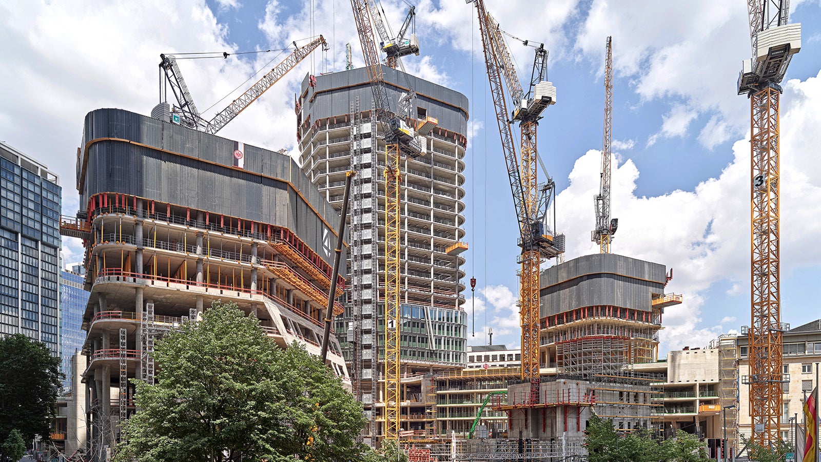 Als die gebürtige Flensburgerin auf der Baustelle ankommt, sieht man direkt das noch im Bau befindliche Hochhaus-Quartett, das aus der Feder des niederländischen Architekturbüros UN Studio stammt. Quartett bedeutet allerdings nicht, dass alle Türme gleich sind. Ganz im Gegenteil: Sie unterscheiden sich in ihrer Höhe und den Nutzungsmöglichkeiten, was wiederum auf die Konstruktion einen enormen Einfluss hat.