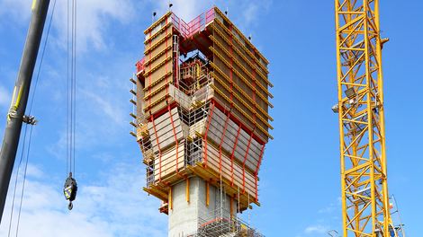 Ein besonderer Meilenstein in seiner Karriere ist zweifelsohne die Planung der Mersey Gateway Bridge im Jahr 2015. Das gigantische Bauwerk verbindet die Städte Runcorn und Widnes nahe Liverpool und erstreckt sich über 2.250 Meter. Getragen wird die imposante Brücke von drei massiven Pylonen. „Unsere Herausforderung bestand darin, innovative Schalungslösungen zu entwickeln, die nicht nur kran- und wetterunabhängiges Arbeiten ermöglichen, sondern auch eine Sonderkonstruktion umfassen, um Kletterzeiten zu verkürzen und Betonarbeiten zu beschleunigen“, erzählt Thomas begeistert.