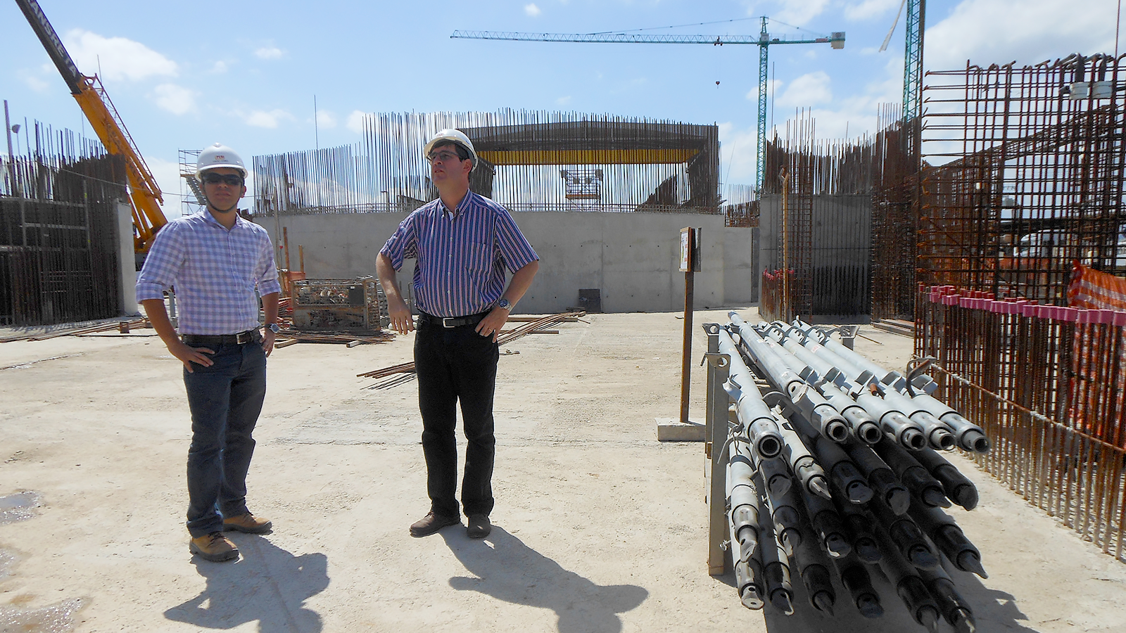 Während unseres Gesprächs mit Thomas stoßen wir auf zwei Bilder auf seinem Schreibtisch, die ihn auf unterschiedlichen Baustellen zeigen. „1995 bin ich für fünf Jahre nach Brasilien gezogen und habe dort als Technischer Leiter das Schalungsteam geführt“, erzählt Thomas und zeigt dabei auf das erste Bild. „Dazu gehörte es, auf Baustellen zu sein und mir selbst ein Bild von den Gegebenheiten zu machen. So, wie beim Mersey Gateway Bridge-Projekt auch ein Supervisor vor Ort war, der uns Rückmeldung über den aktuellen Stand gegeben hat.“