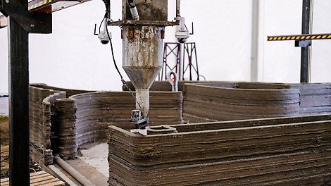 Mit Hilfe eines 3D-Betondruckers lassen sich Betonstrukturen ohne Schalung schnell und kostengünstig realisieren - bei großer Gestaltungsfreiheit. Dadurch eignet sich das Verfahren ideal als Ersatz für Ziegelkonstruktionen.