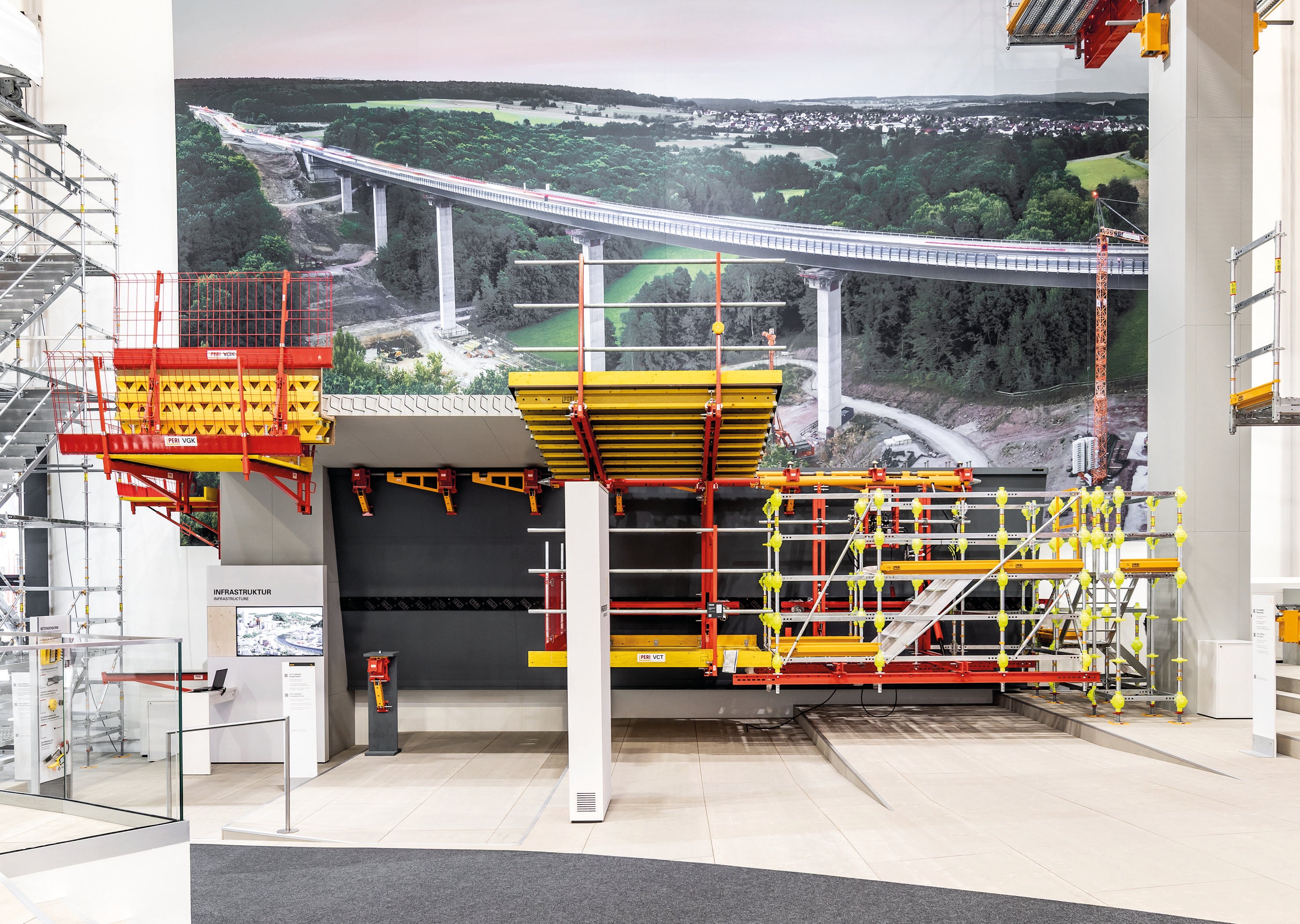 To keep traffic flowing, construction has been split into two phases. First, one half of the new bridge is built. Once complete, traffic will be redirected onto it, enabling the original 50-year-old bridge to be dismantled and the second half to be constructed in its place. Once finished, the new viaduct will span 460 metres and rise 53 metres above the ground. The contractor Adam Hörnig Baugesellschaft mbH & Co. KG (AHA), has already delivered the first segment. However, they have taken a bold step forward for the second segment by opting for an innovative solution from PERI: the VARIOKIT Composite Track (VCT). This pioneering approach has already earned AHA the bauma Innovation Award 2025 in the 'Construction' category.